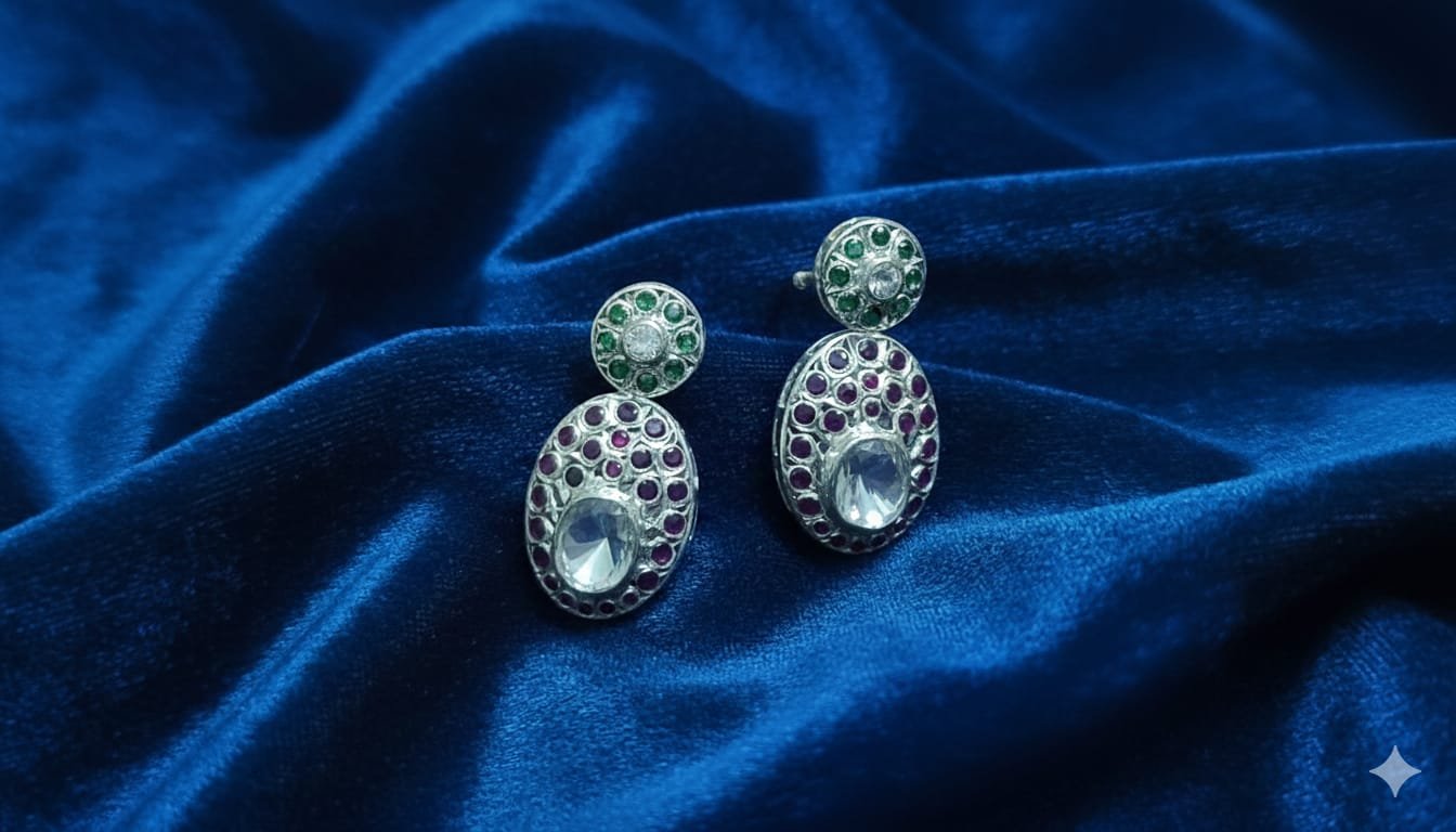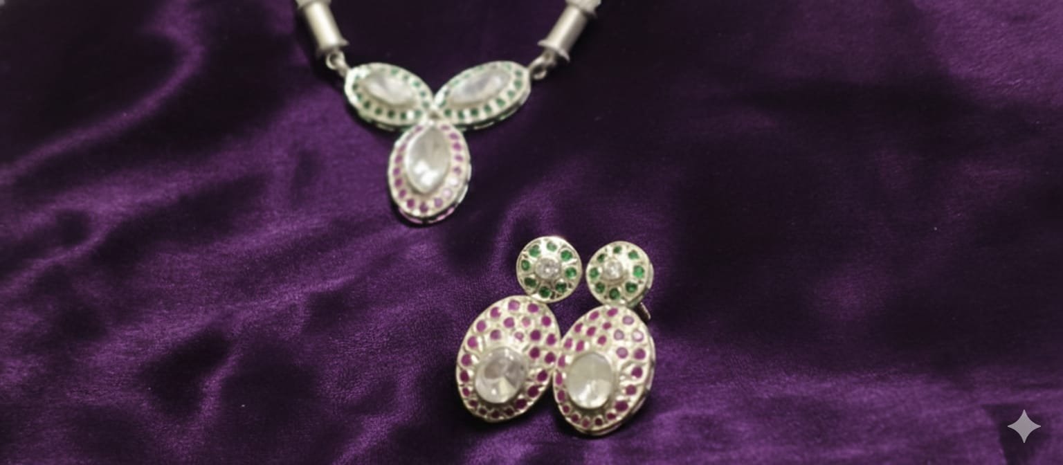 Elevate your style with this elegantly designed pendant, crafted using 92.5 sterling silver. Perfectly balanced with Tri-Polki and sparkling cubic zircon stones set in a distinctive South-style Pacchi setting, offering a unique blend of tradition and modern elegance., this pendant delivers a sophisticated and timeless charm. Whether you’re dressing up for a special occasion or seeking to enhance everyday looks, this accessory promises unmatched versatility and elegance.
